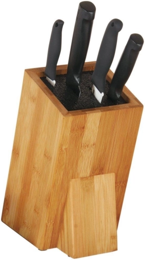 Et praktisk og stilfuldt tilbehør til køkkenbordet, som holder knive, sakse og andet udstyr lige ved hånden og pænt organiseret. Naturlig bambus udmærker sig ved sin holdbarhed og tidløse æstetik og passer perfekt i både moderne og klassiske interiører. Den universelle indsats med tætte plastfibre fikserer sikkert klinger i forskellige længder og bredder.