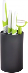 Den kompakte cylindriske form i sort farve sparer plads på køkkenbordet, holder værktøjerne lodret og passer perfekt ind i både moderne og klassiske køkkener.