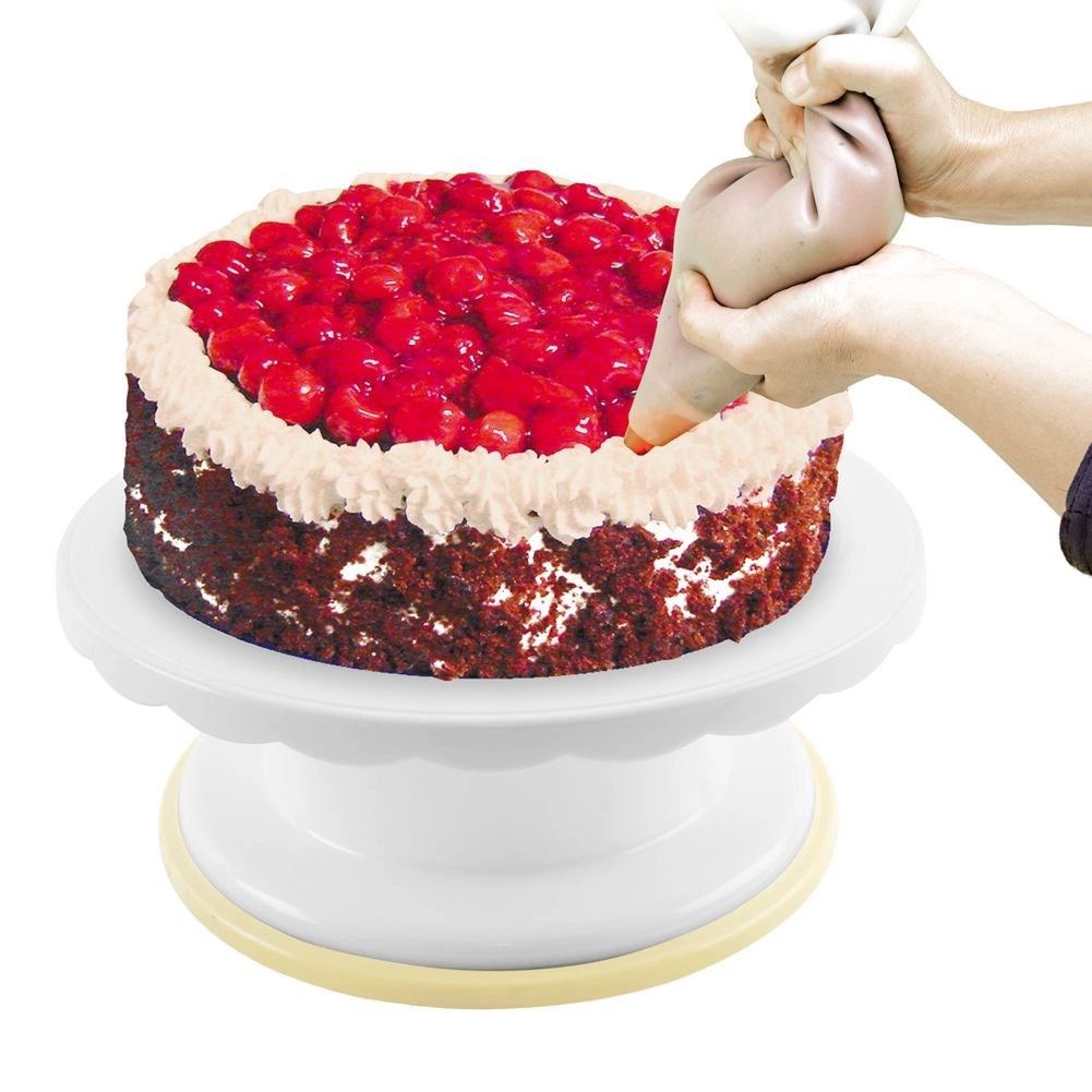 Pladen roterer både til højre og venstre, så du kan påføre cremer, glasurer og fin dekoration hurtigere og mere præcist uden at ændre grebet.