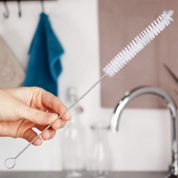 Denne lange og smalle børste er ideel til rengøring af flasker, vaser, rør og andre beholdere med smal hals. Metalkonstruktionen sikrer den nødvendige stivhed, mens de tætte plastbørster effektivt fjerner belægninger selv på svært tilgængelige steder. Den ergonomiske løkke i enden muliggør praktisk ophæng og hurtig adgang i daglig brug.