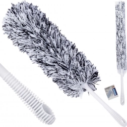 Denne antistatiske støvfanger er den ideelle hjælper til hurtig og skånsom fjernelse af støv fra tv, møbler, lamper, persienner og vindueskarme. Den tætte mikrofiber i grå-hvidt design opfanger effektivt støv og allergener uden at hvirvle snavs op i luften. Takket være lav vægt og lang rækkevidde (55 cm med håndtag) rengør du også smalle sprækker og højere hylder.