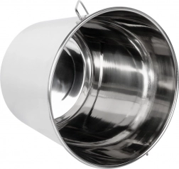 Den rustfri spand på 12 l er en praktisk hjælper til indsamling, transport og opbevaring af væsker og fødevarer. Den er lavet af kvalitets rustfrit stål, der er egnet til kontakt med fødevarer, hvilket gør den velegnet til både køkken og professionel gastronomi. Den glatte overflade er let at vedligeholde, absorberer ikke lugte og er modstandsdygtig over for korrosion.