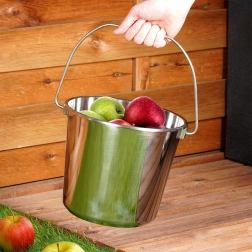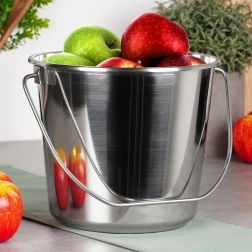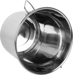 Rustfri spand 5 l er en pålidelig hjælper til transport og opbevaring af vand, mælk eller andre råvarer. Den er egnet til kontakt med fødevarer, er let at rengøre og takket være det holdbare rustfrie stål holder den i mange år. Det stærke håndtag muliggør komfortabel transport og ophængning.