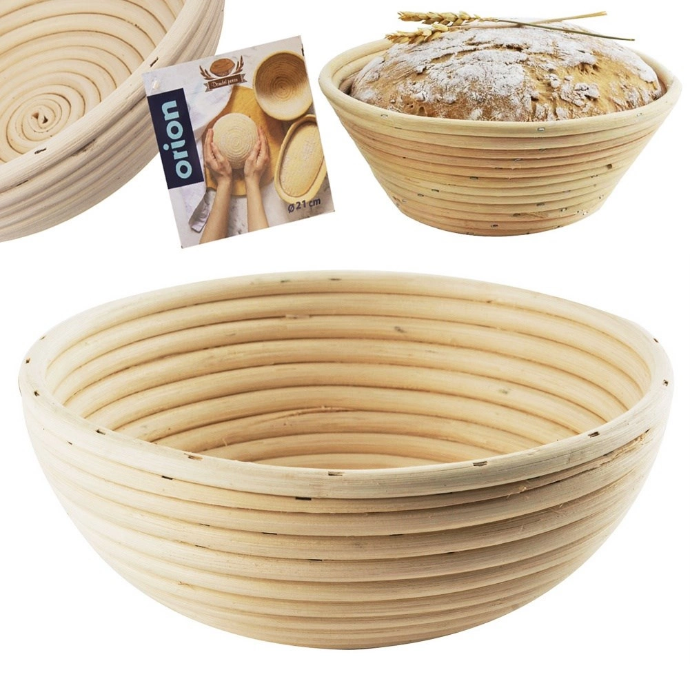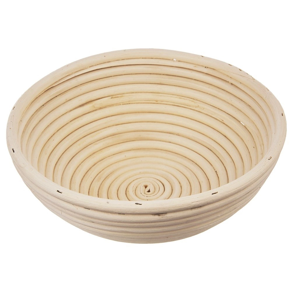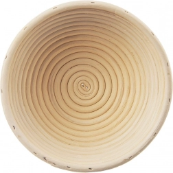 Rund rattan-hævekurv med diameter 21 cm til perfekt hævning af hjemmebagt brød op til 1,2 kg. Fremstillet af naturlig rattan i beige, som er åndbar, let i konstruktionen og skaber et dekorativt spiral mønster på skorpen. Ideel til stabil brødform, jævn hævning og nem udløsning af dejen.