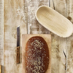 Den ovale rattan-hævekurv er en uundværlig hjælper til hævning af brøddej og stilfuld servering. Det naturligt åndbare materiale hjælper med at lede fugt væk, dejen holder formen bedre og får efter bagning karakteristiske spiralriller.