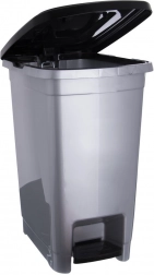 Den robuste plastkonstruktion i grå med sort låg er holdbar og let at vedligeholde. Takket være det slanke design passer den også i smalle rum, og flere spande side om side kan bruges til overskuelig affaldssortering.