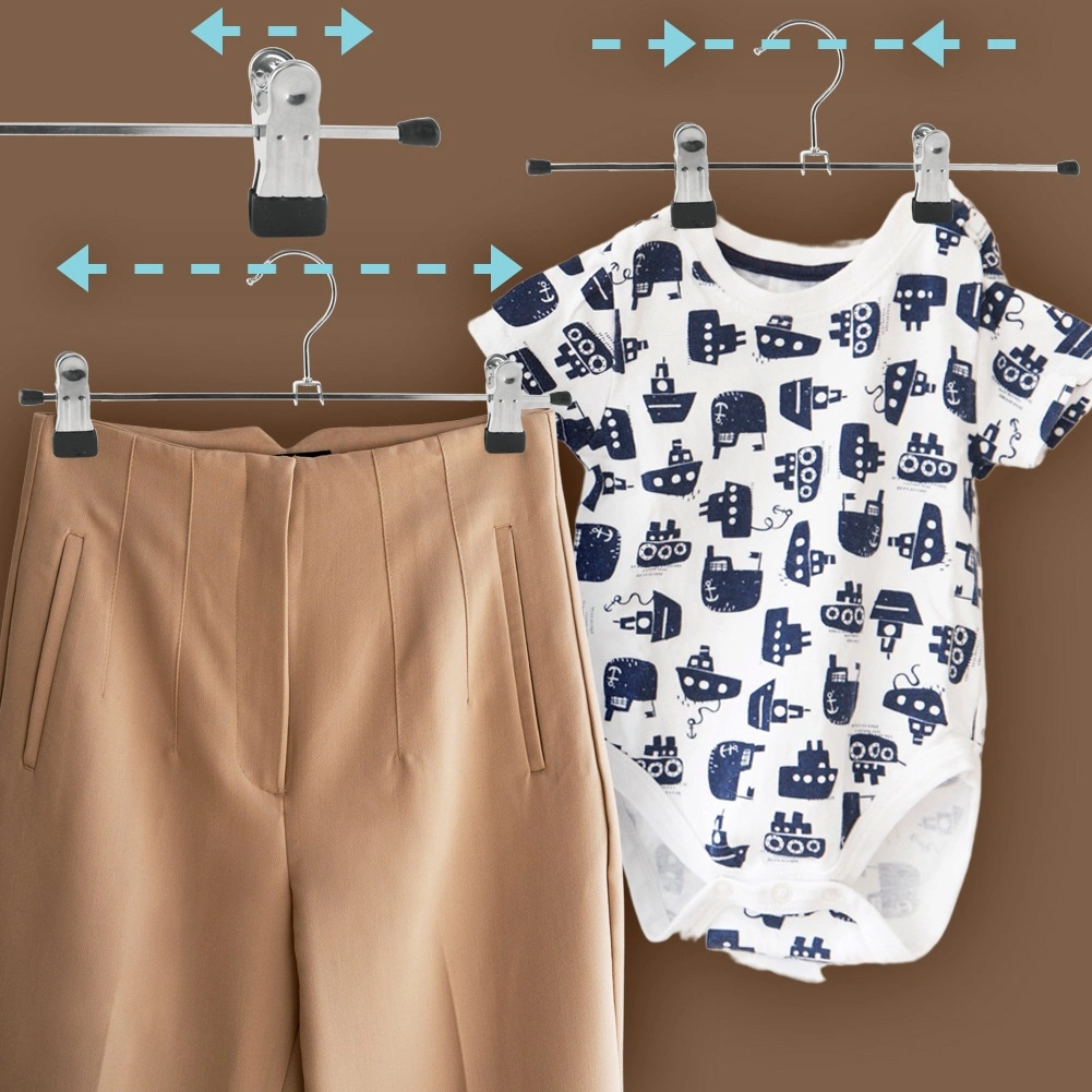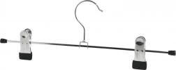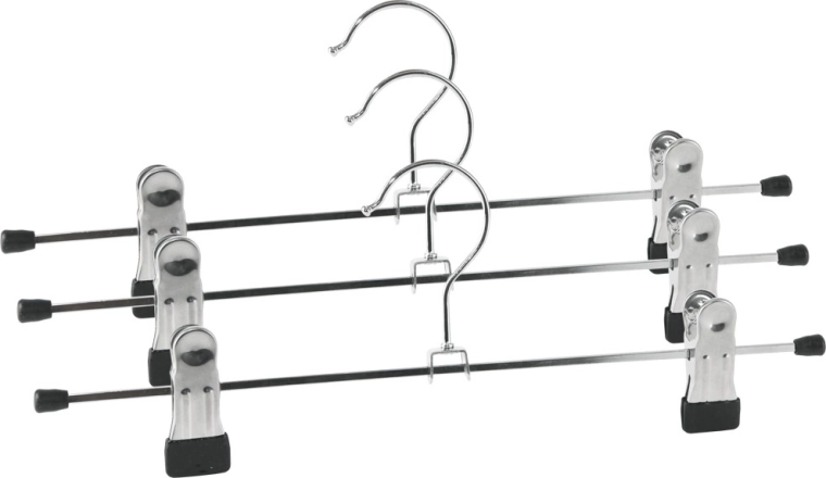 Sæt med 3 metalbøjler med clips er en fremragende hjælper til organisering af garderoben. Robust metal i elegant sølvfarve og clips med sorte ender beskytter stoffet mod skader. Takket være de skydbare clips tilpasser du nemt afstanden til enhver genstand – fra smalle nederdele til brede bukser.
