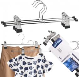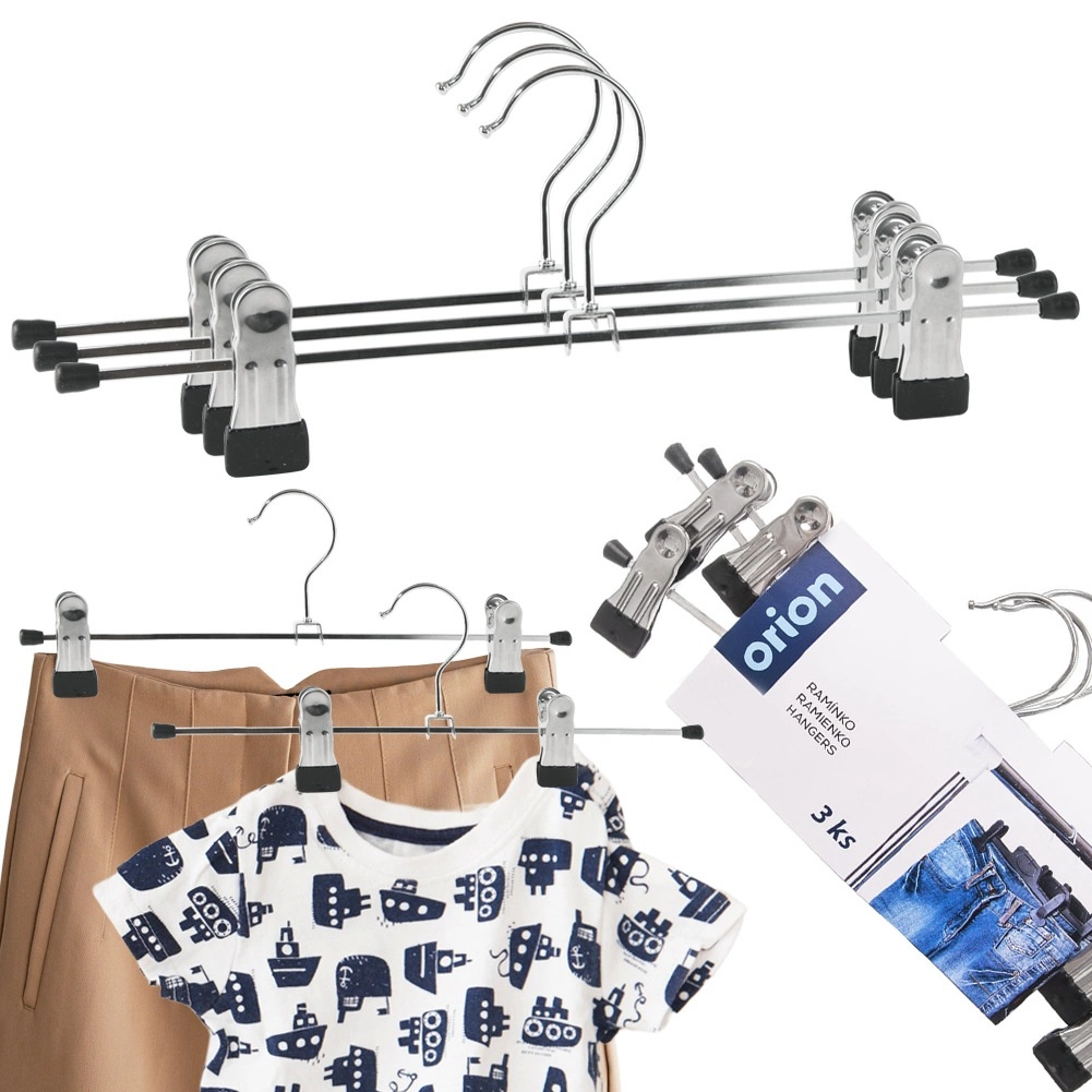 Bøjlerne hjælper med at spare plads, holder tøjet på plads og forhindrer at det glider. De er egnede til jeans, habitbukser, nederdele (mini og lange), shorts, buksedragter og børnetøj. Originalt produkt fra mærket ORION, fremstillet i overensstemmelse med europæiske standarder.