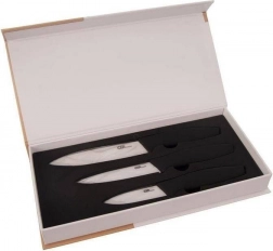 Dette alsidige sæt indeholder en lille, mellem og stor kniv til præcis skæring, udskæring og skrælning. Fuld keramisk klinge giver et glat snit, maden klistrer mindre, og vitaminer og næringsstoffer bevares bedre. Takket være de ergonomiske håndtag i kvalitetsplast i sort ligger knivene godt i hånden og glider ikke.