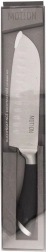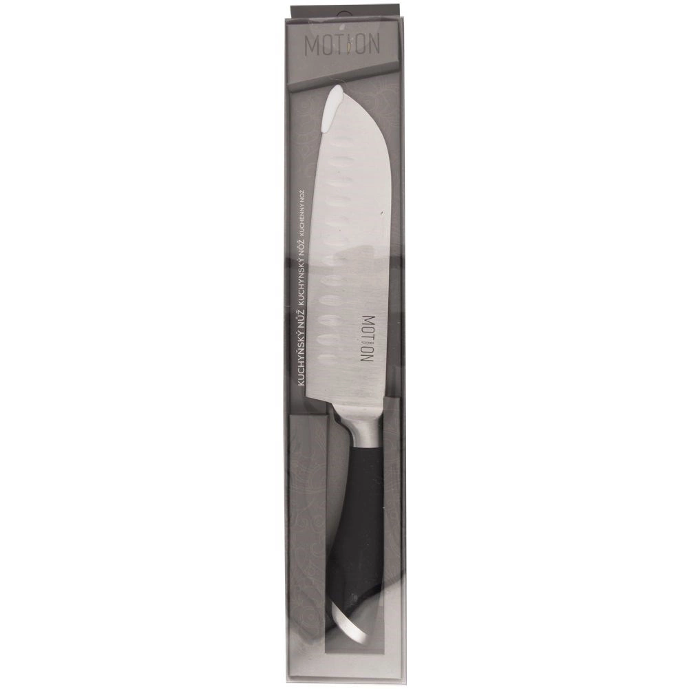 Santokukniven MOTION kombinerer en skarp klinge i rustfrit stål med et behageligt, skridsikkert håndtag i elegant sort. Takket være den afbalancerede konstruktion og klingens form er den fremragende til præcis skæring, hakning og udskæring i skiver. Klingen af kvalitets rustfrit stål holder skæret og trænger let gennem råvarerne.