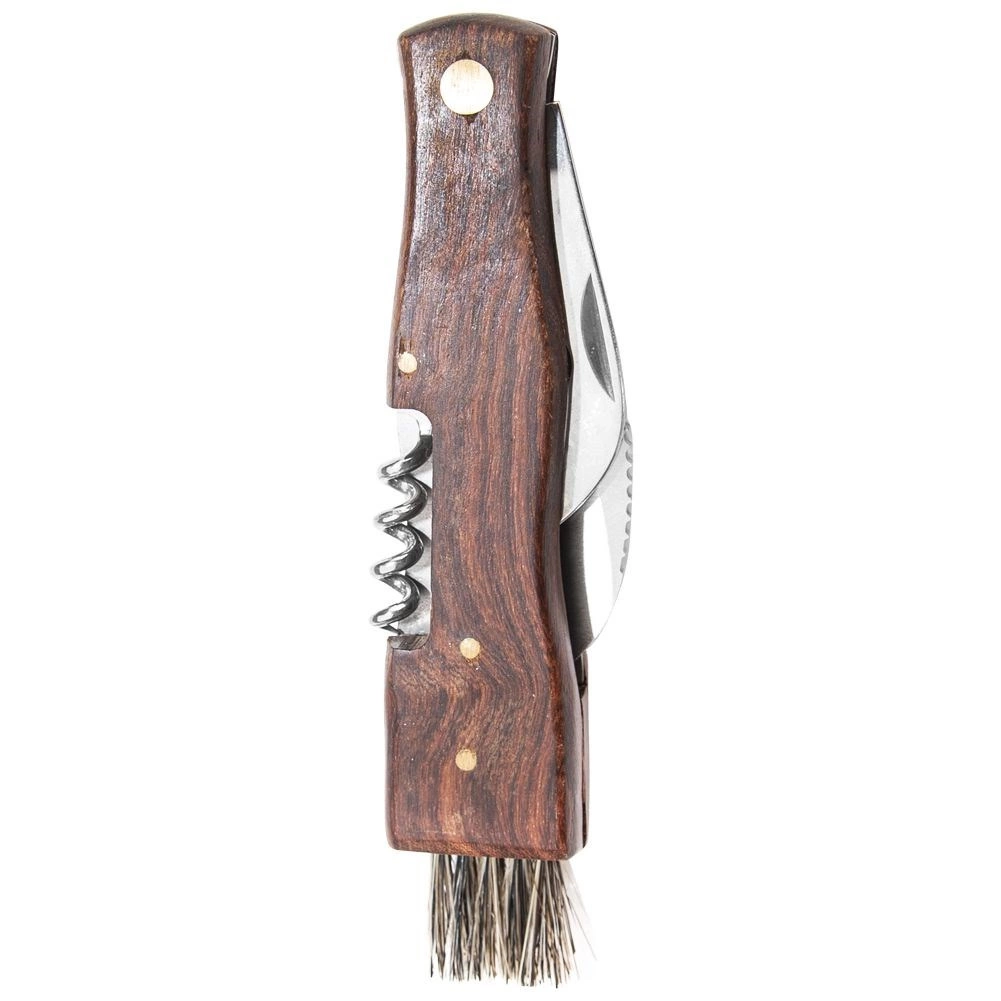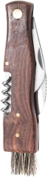 Indbygget flaskeåbner og proptrækker udvider knivens anvendelse på picnic, ture og camping. Den foldbare konstruktion er sikker i lommen.