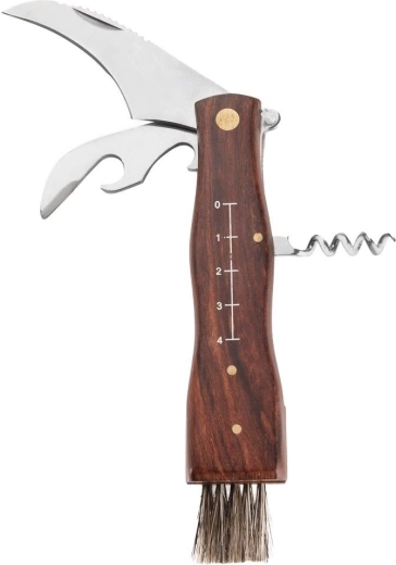 Takket være det multifunktionelle udstyr – flaskeåbner til kapsler og proptrækker – er denne lommekammerat perfekt til udflugter, picnic og camping. Den foldbare konstruktion sikrer sikker transport og minimal plads; et øje i håndtaget gør det nemt at fastgøre den til en snor eller karabin.