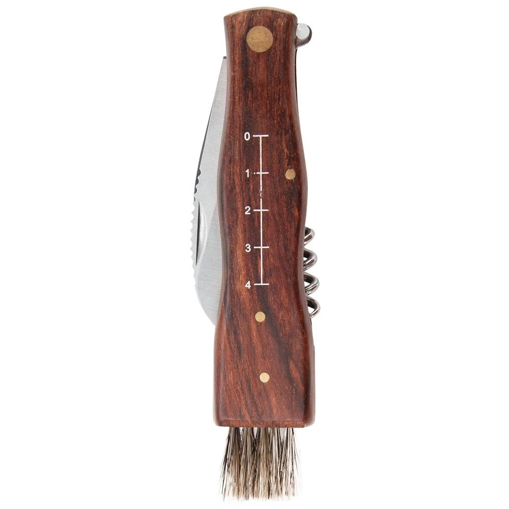 Den fine børste fjerner jord og nåle, og håndtaget med mål hjælper dig hurtigt med at kontrollere størrelsen på de svampe, du finder.