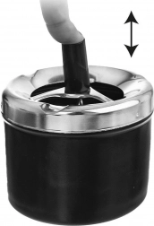 Hold orden uden lugt – den lukkelige askebæger med drejelåg sender aske og cigaretskodder ned indvendigt ved tryk på knappen, hvor de forbliver skjult. Ubehagelige lugte slipper dermed ikke ud, og overfladen forbliver ren.