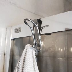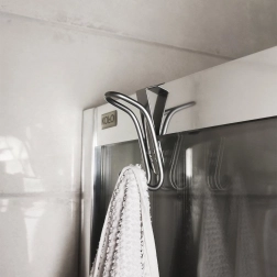 Hver krog har to ophængspunkter. Sikker afrundet afslutning beskytter tekstiler mod at hænge fast og gør det nemt at hænge håndklæder, morgenkåber og tasker.