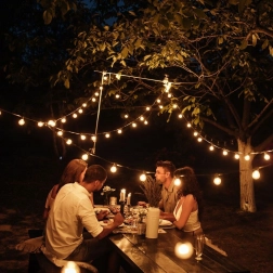 Hver fatning er udstyret med en krog for nem montering på wirer, kroge eller grene. Installationen klares på få minutter.