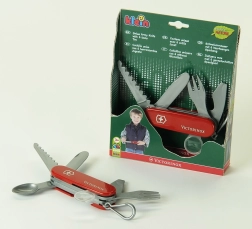 Denne legetøj er designet med fokus på kvalitet og detaljer, så den ligner en ægte schweizisk hærkniv. Den har et rødt etui med Victorinox-logoet og er udstyret med en praktisk karabinhage, der nemt kan fastgøres til f.eks. et bælte.