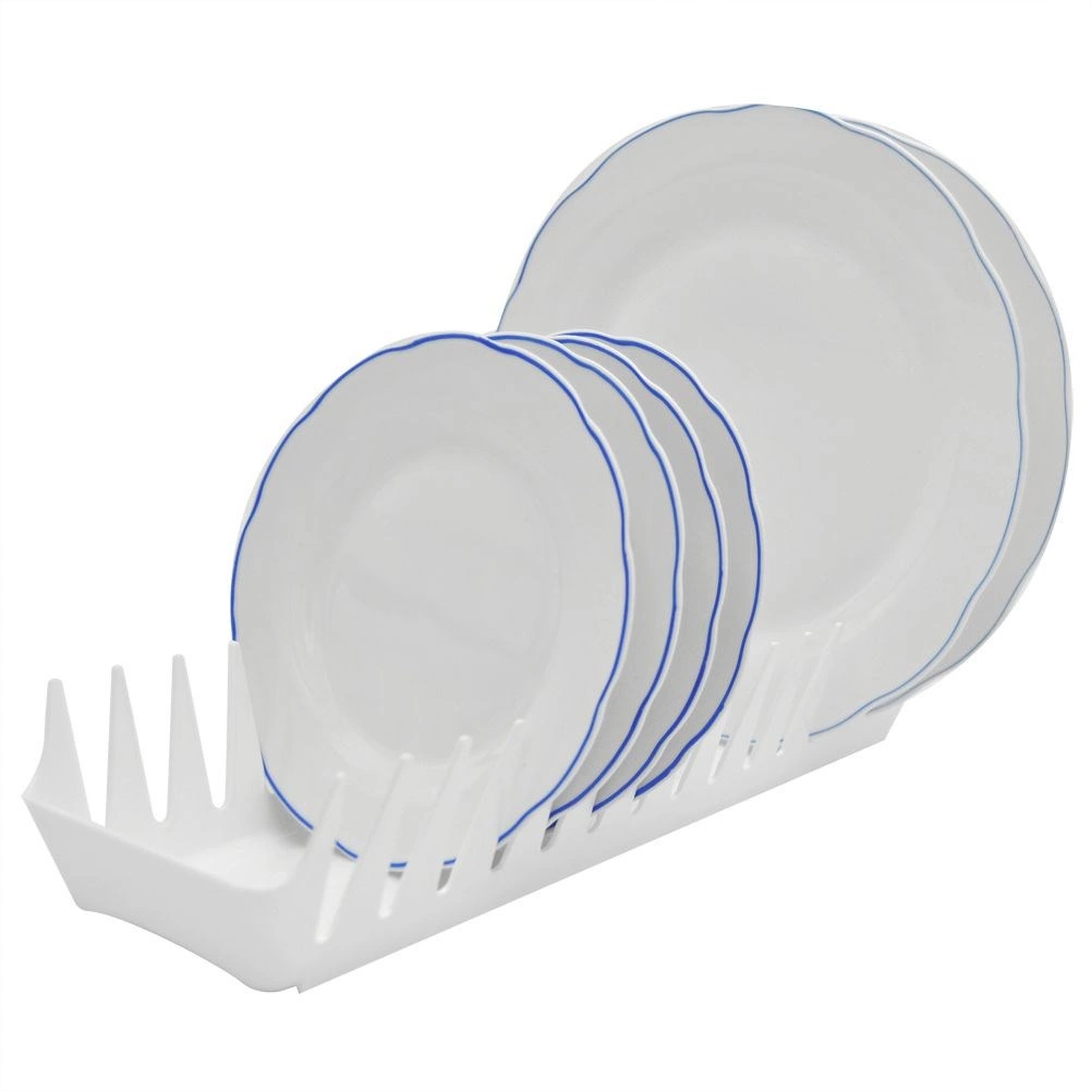 Hold styr på køkkenet og fremskynd tørringen af service. Dette hvide plastiske tallerkentørrestativ tilbyder kapacitet til op til 15 styk og sikrer optimal luftcirkulation takket være den lodrette placering. Brug det på køkkenbordet, i skabet eller i en dyb skuffe.