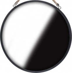 Dette vægmonterede, runde spejl kombinerer minimalistisk design med praktisk ophæng på snor. Den sorte metalramme fremhæver de rene linjer og tilfører et markant accent i entré, stue, soveværelse eller badeværelse. Takket være den universelle farve og form integreres det nemt i forskellige typer interiører.