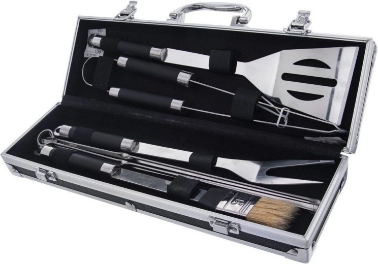 Alt, hvad du behøver for bekymringsfri grillning, samlet ét sted. Dette 9-delte sæt i rustfrit stål byder på robuste redskaber med komfortable, lange håndtag for sikker og præcis kontrol ved den glohede grill. Den praktiske kuffert med håndtag og låse sørger for overskuelig opbevaring og nem transport.