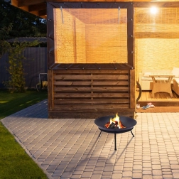 Takket være skålens indadtiltede form bliver brændslet liggende selv i kraftigere vind, hvilket øger sikkerheden og komforten. Bålstedet er ikke kun funktionelt, men også et dekorativt element, der løfter udseendet af enhver have eller terrasse.
