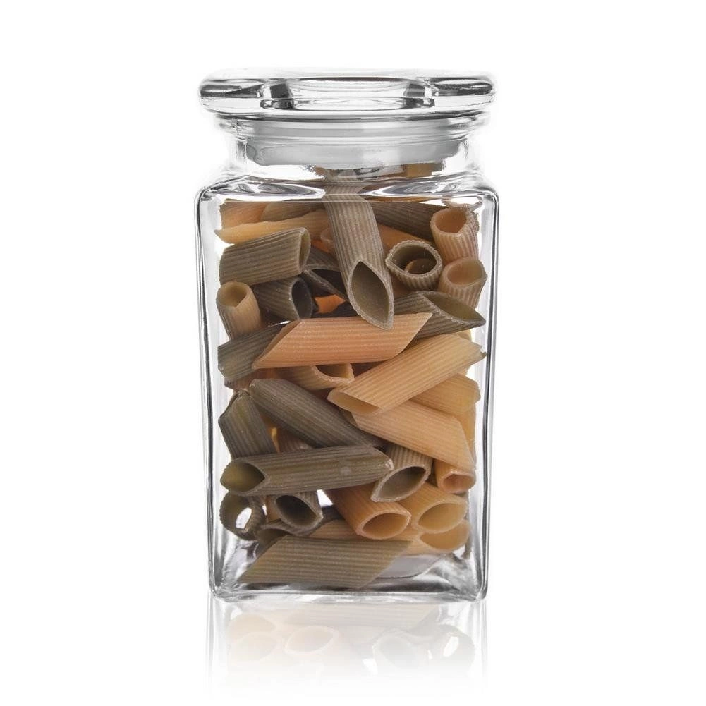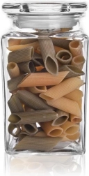 Elegant glasbeholder i retrostil med målene 10 × 10 × 19 cm sørger for overskuelig og lufttæt opbevaring af fødevarer. Det gennemsigtige, kraftige glas gør det nemt at tjekke beholdningen uden at åbne, mens tætningsringen i låget hjælper med at holde maden frisk længere og beskytter mod fugt og lugte.