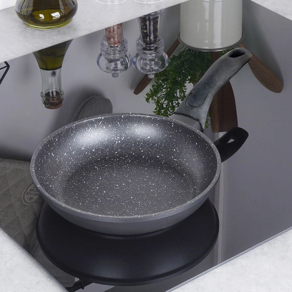 Kompakt granitpande med en diameter på 20 cm til daglig madlavning. Tilbyder non-stick overflade uden PFOA og PTFE, jævn varmefordeling og hurtig, energibesparende stegning. Det ergonomiske håndtag bliver ikke varmt, og panden er egnet til gas, el, glaskeramik, halogen og induktion og kan tåle opvaskemaskine.