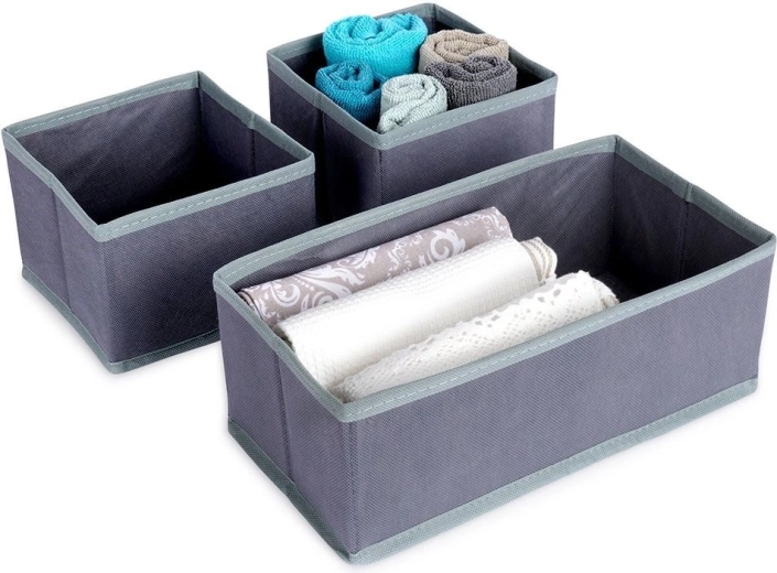 Organisatorerne i let, åndbart tekstil med solid kantbånd holder formen og beskytter samtidig de opbevarede genstande. Ideelle til daglig brug i skuffer og på hylder.
