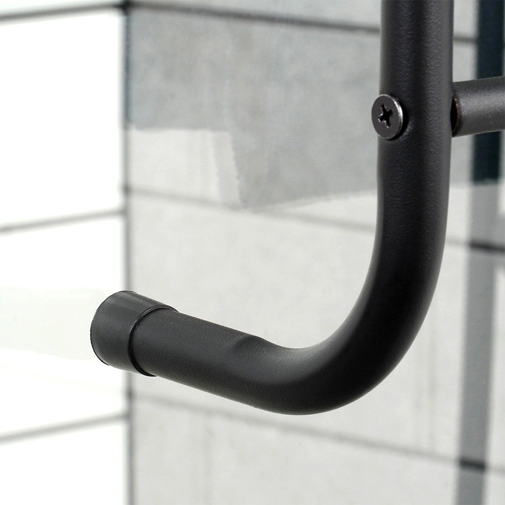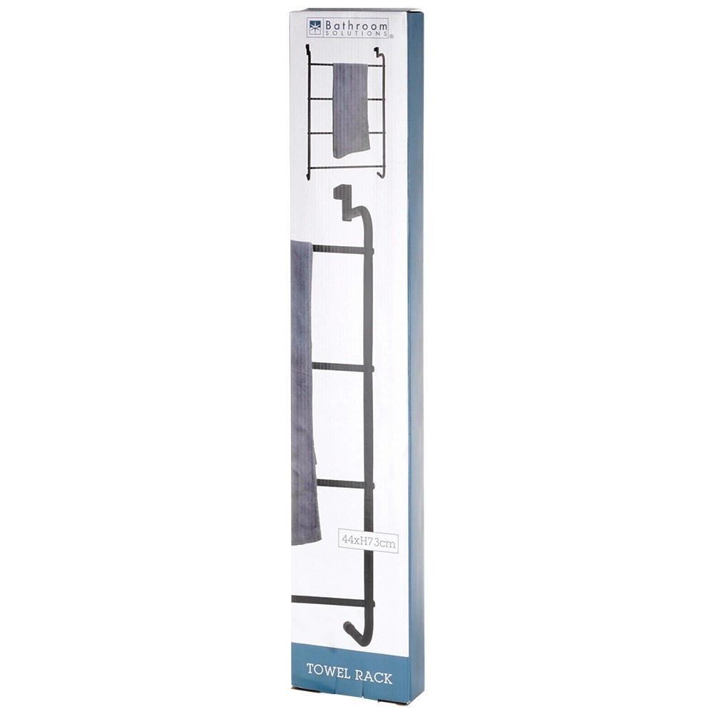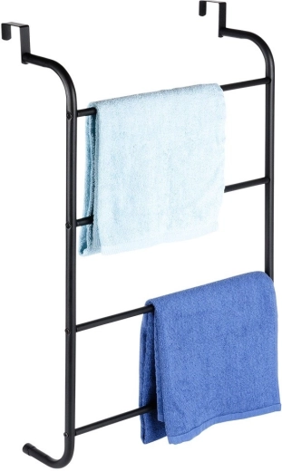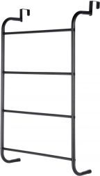 Maksimer pladsudnyttelsen på badeværelset med en smart over-dør-håndklædeholder, der nemt hænges over dørens øverste kant. Fire horisontale tværstænger giver rigelig plads til tørring og opbevaring af håndklæder til hele familien. Den metalbaserede konstruktion i mat sort passer ind i moderne interiører og tåler daglig brug takket være det robuste design.
