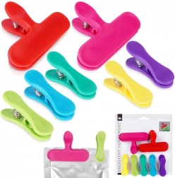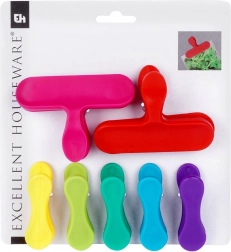 Fem mindre klips (6,5 cm) til krydderier og små poser samt to større klips (9 cm) til chips, pasta eller morgenmadsprodukter.