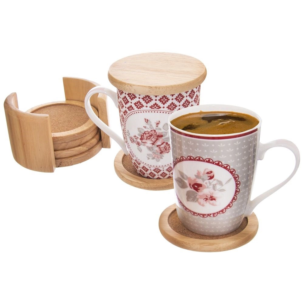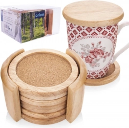 Med i pakken er en praktisk holder, der holder alle underlag samlet og sparer plads på køkkenbordet og i skabet. Ved korrekt brug holder sættet i mange år takket være den omhyggelige udførelse i træ og kork.