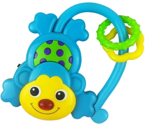 Baby Mix rangle i form af en sød lille abe kombinerer leg og færdighedstræning. Når knappen trykkes, spiller ranglen en melodi og lyser, hvilket naturligt stimulerer både syn og hørelse. Farverige elementer, spejl og teksturerede bideringe giver babyen underholdning og lindring under tændernes frembrud.