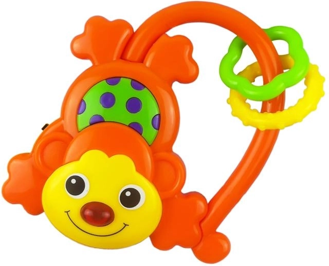Baby Mix rasle formet som en glad abe er en fantastisk ledsager til de første opdagelser. Når knappen trykkes, afspilles en behagelig melodi og samtidig lyser den, hvilket stimulerer både syn og hørelse hos babyen. De farverige detaljer og det sikre spejl motiverer til at kigge og udforske.