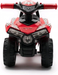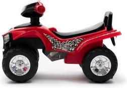Gåbilen har et komfortabelt bredt sæde, opbevaringsplads under sædet samt effektfulde lyd- og lyseffekter. De tre gemte melodier og hornet glæder små chauffører, mens de blinkende lys på styret giver et attraktivt udseende og bedre fornemmelse under kørslen.
