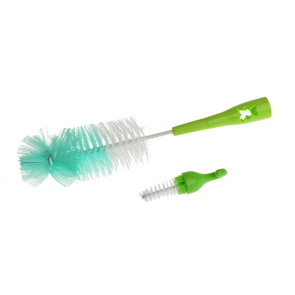 Den store børste rengør indersiden af flasker, mens den lille børste når ind i sutter, låg og andre svært tilgængelige dele.