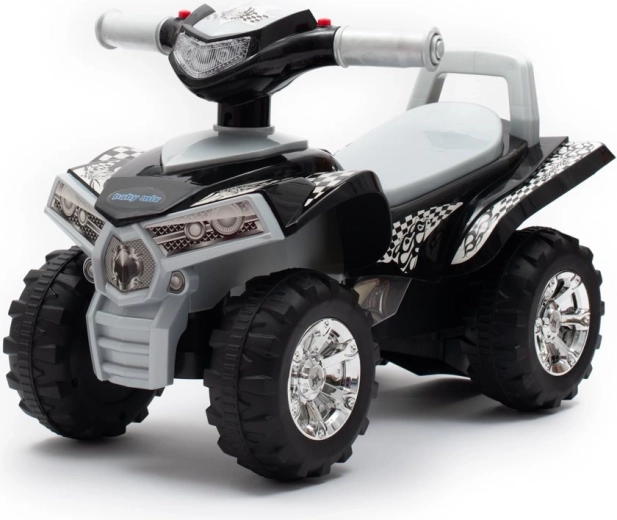 Denne firehjulede løbecykel BABY MIX i grå er en fantastisk makker til de første skridt og køreture. Den tilbyder et komfortabelt, bredt sæde, en stabil konstruktion og enkel styring via styret. Med de legende effekter – horn, tre gemte melodier og blinkende lys – får børn masser af sjov og motivation til bevægelse.