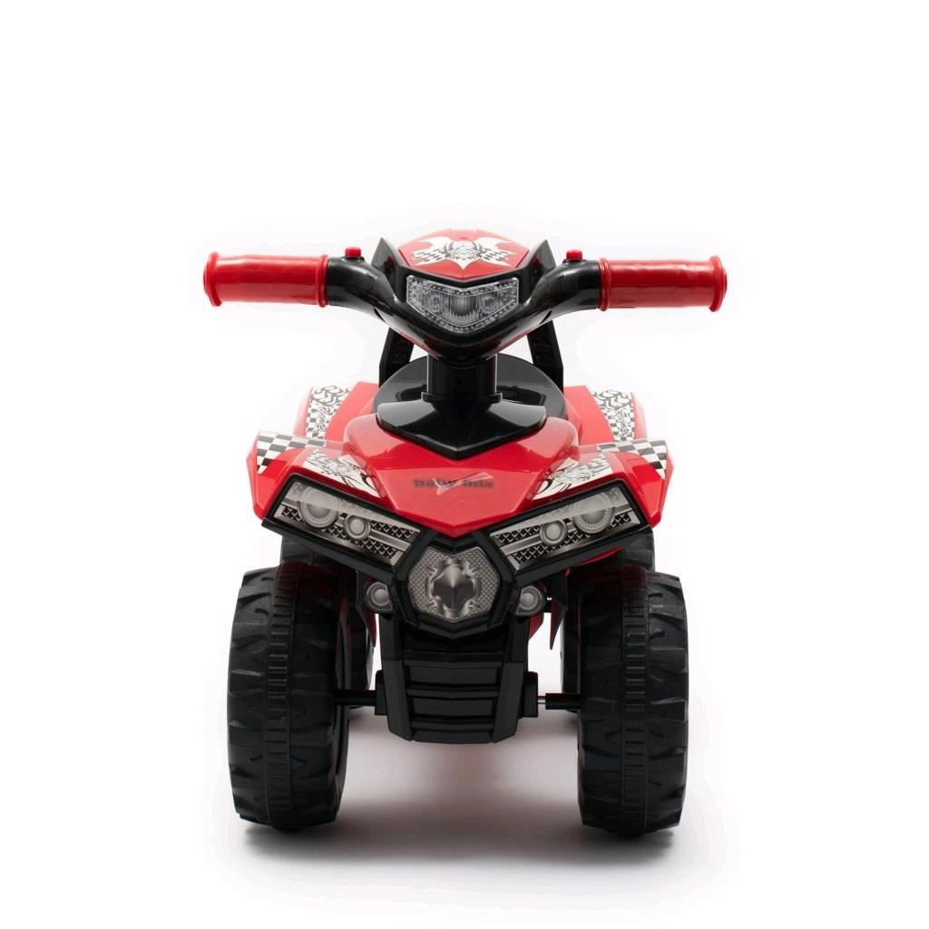 Horn, tre glade melodier og blinkende lys på styret motiverer børn til at køre og forlænger legens varighed. Drives af 2× AA (medfølger ikke).