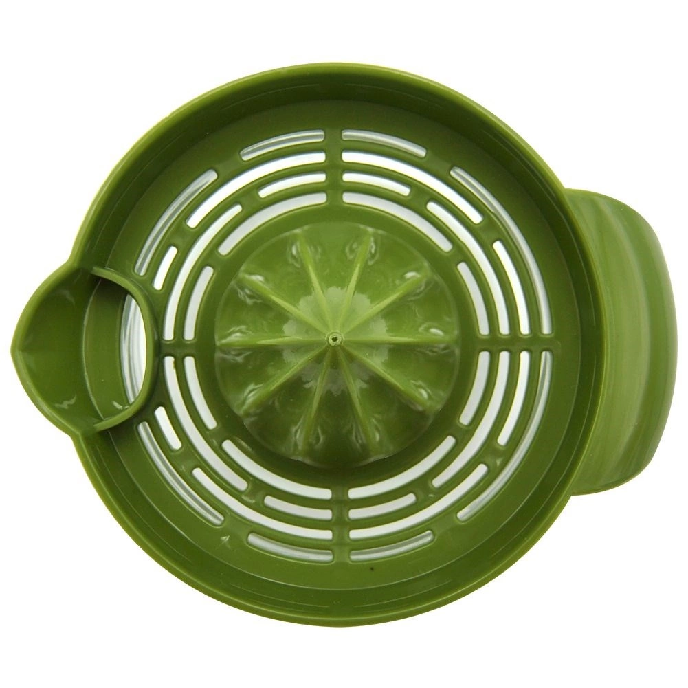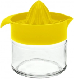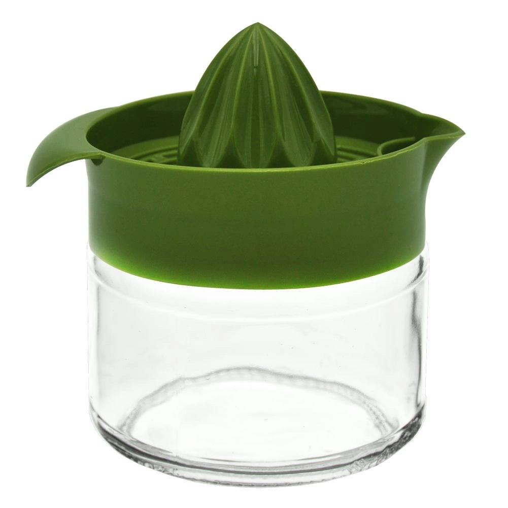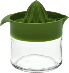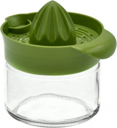 Klassisk glas-citruspresser med plastkegle og integreret si, der gør det nemt at presse juicen direkte i beholderen. De kompakte mål og den stabile base sikrer sikker og hurtig brug uden rod.
