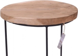 Sættet med tre runde borde i forskellige størrelser gør det nemt at tilpasse indretningen. De massive plader i naturligt teaktræ har en smuk åretegning og høj slidstyrke, mens det stabile stel i sort pulverlakeret metal understreger det moderne industrielle udtryk.