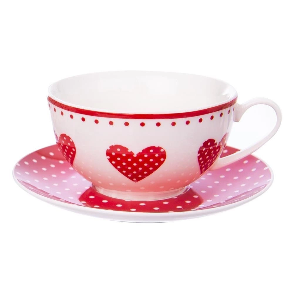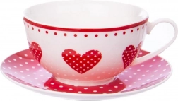 Dette elegante tea-for-one-porcelænssæt er perfekt til hyggestunder med te eller urtete. Det minimalistiske formsprog, behagelige greb og det legende dekormotiv med røde hjerter og prikker giver borddækningen charme og hygge. Takket være de kompakte mål står kanden sikkert direkte på koppen – alt er samlet og uden unødigt rod.