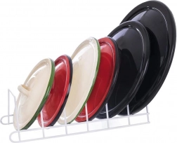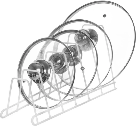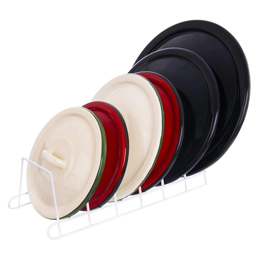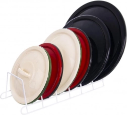 Hold styr på køkkenet med en kompakt holder med plads til 6 positioner. Den åbne trådkonstruktion holder låg, flade tallerkener og brætter overskueligt og let tilgængeligt, samtidig med at den forhindrer, at de glider og bliver beskadiget. Placeres på bordpladen, i skabet eller i en dyb skuffe.