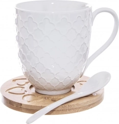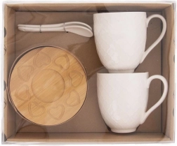Gaveæsken gør det til et perfekt valg som stilfuld gave til enhver, der elsker varme drikke. Porcelænskrus og skeer kan gå i opvaskemaskinen, og krusene kan bruges i mikrobølgeovn (uden bambus-glasbrik). Bambus-glasbrikkerne med dekorative udskæringer beskytter pålideligt overflader mod varme og pletter.