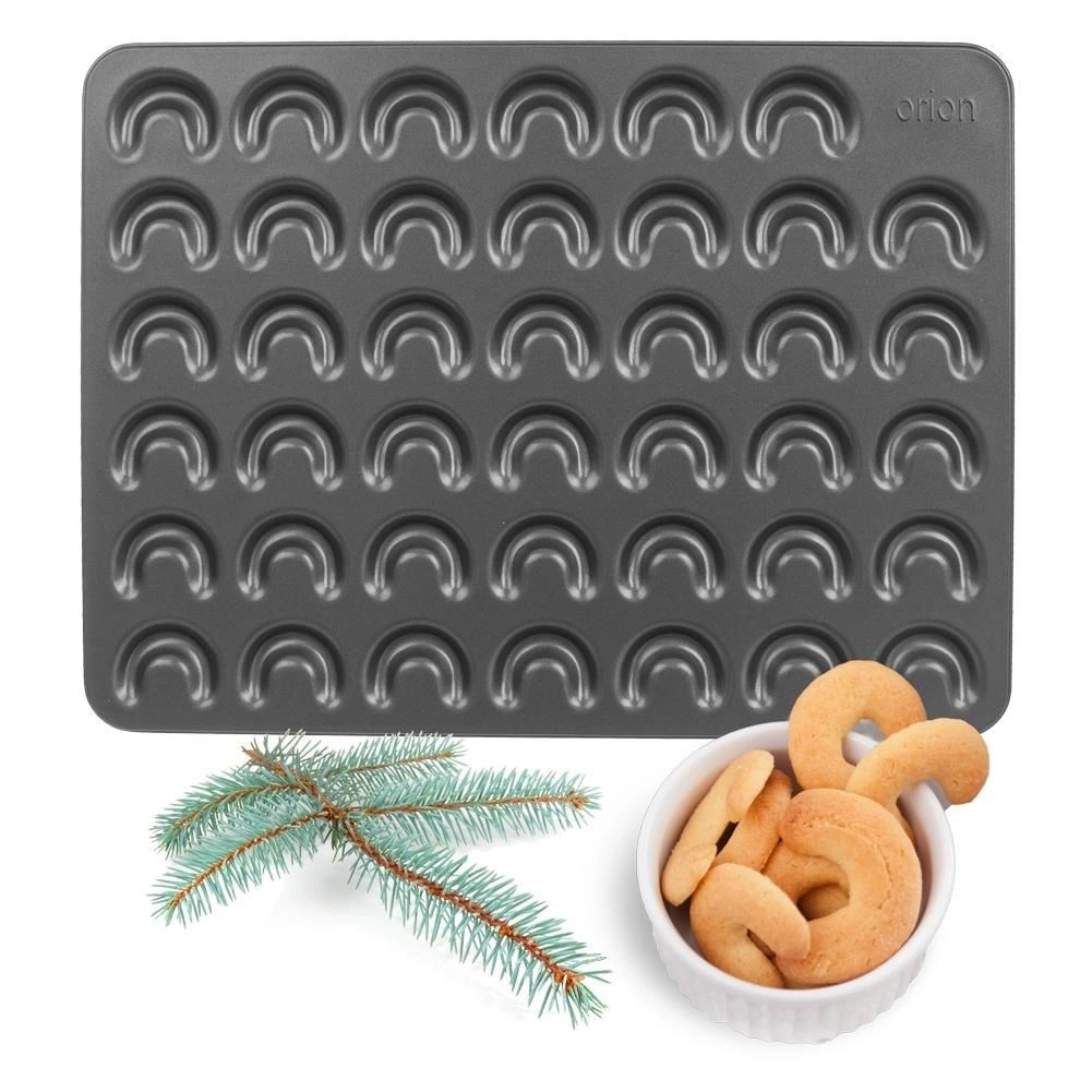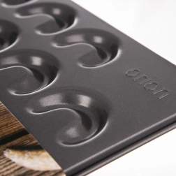 Formen er af kulstofstål, som sikrer jævn varmefordeling og pålidelige resultater. Ideel til horn, småkager og salte snacks. For det bedste resultat anbefaler vi at smøre overfladen let inden bagning. Originalt produkt fra ORION fremstillet i overensstemmelse med europæiske standarder.