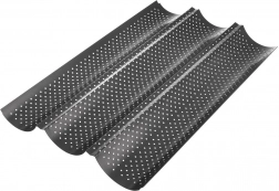 Robustt kulstofstål tåler temperaturer op til 230 °C og giver stabil støtte til 3 baguetter ad gangen. Formen er ikke kun fremragende til at bage friske baguetter, men også til gratinering eller opvarmning.