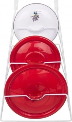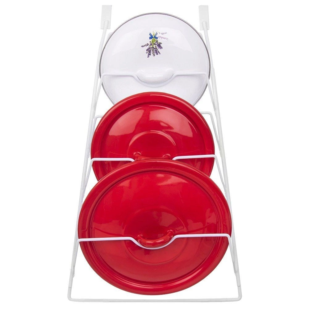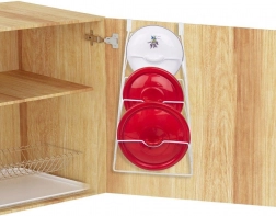 Denne køkkenorganisator i form af en ophængt holder rummer op til 6 låg i forskellige størrelser. Montering uden boring – det er nok at hænge den på skabslågen. Takket være den gennemtænkte konstruktion er låg opbevaret overskueligt, let tilgængelige og beskyttet mod skader.