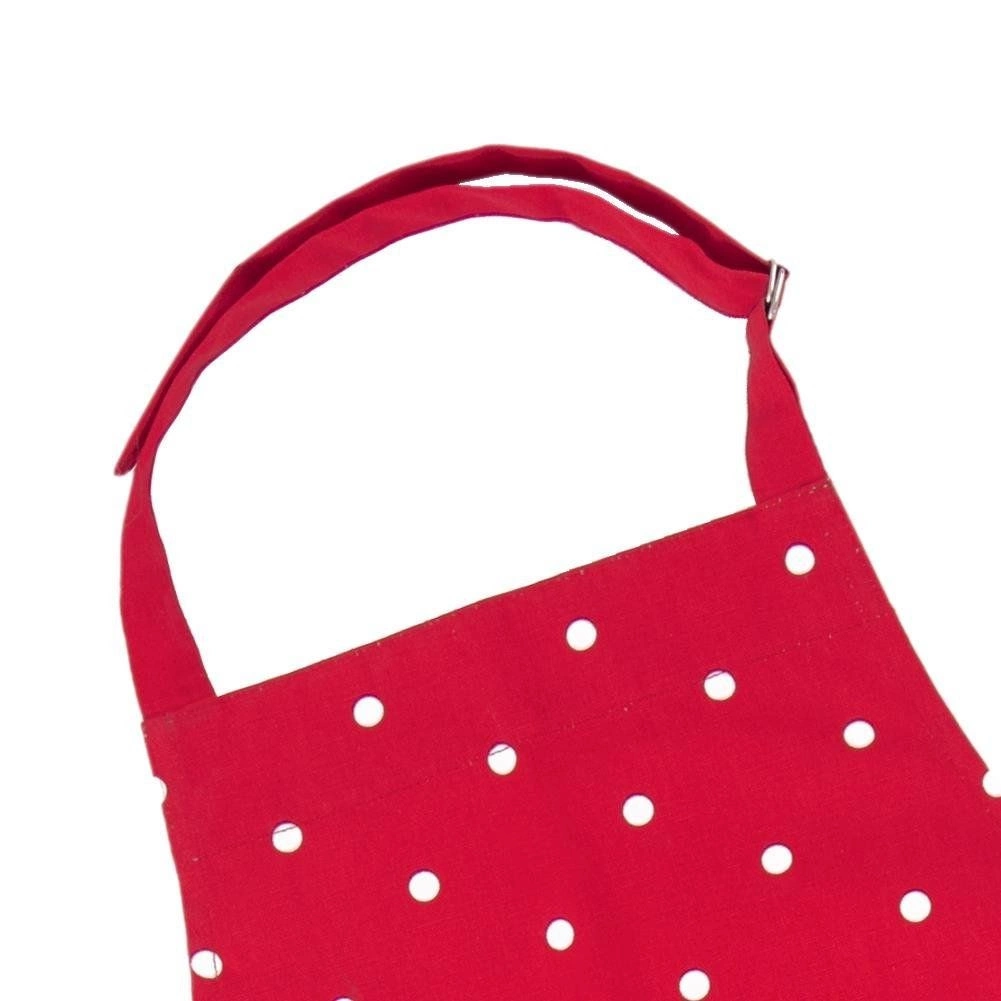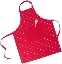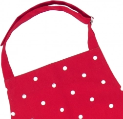 Den røde farve med hvide prikker giver dit køkken et friskt udtryk og beskytter samtidig dit tøj pålideligt.