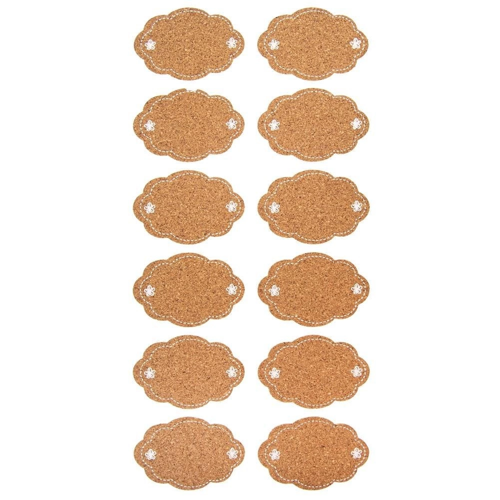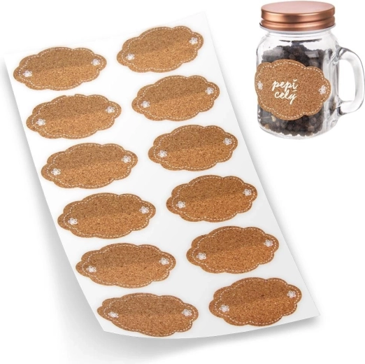 Hold styr på spisekammer og køkken med praktiske selvklæbende etiketter af kork. Pakken indeholder 12 stk. i størrelsen 5,8 × 4 cm. Etiketterne har skyform, er lette at skrive på, sidder fremragende fast på glas, flasker og æsker og giver dine husholdningsforsyninger et elegant udtryk. Perfekte til mærkning af syltetøj, krydderier, gaver og kasser samt til hurtigt tjek af sidste anvendelsesdato.