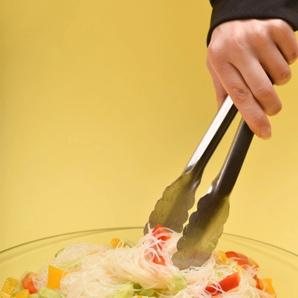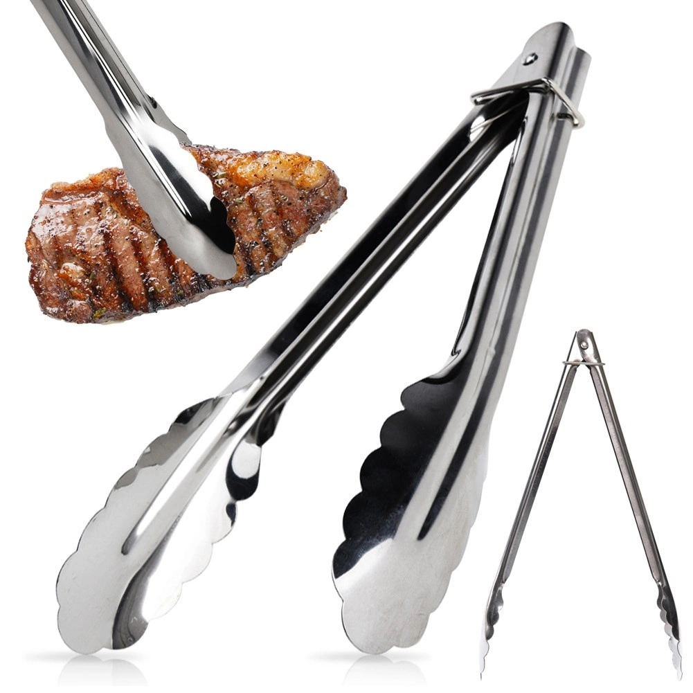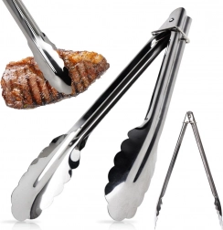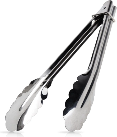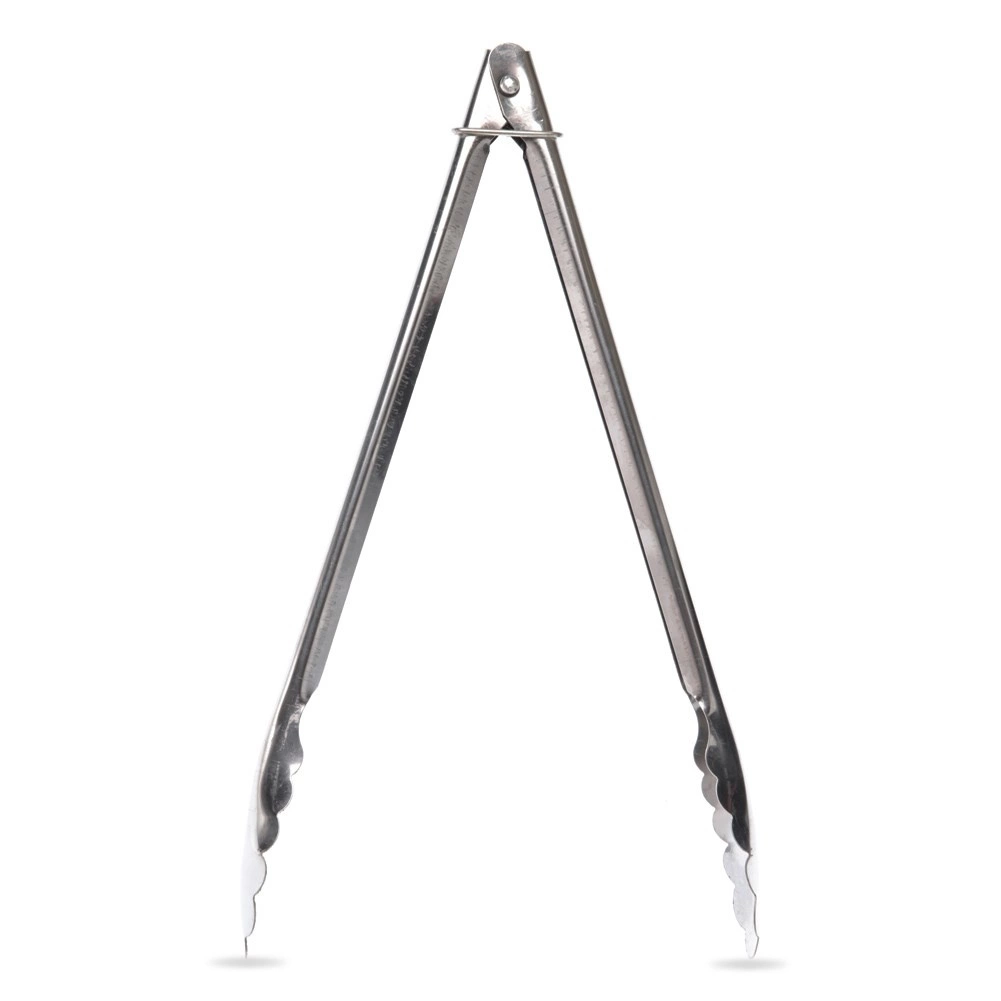 Disse alsidige køkkentænger i kvalitets rustfrit stål bliver en uundværlig hjælper i ethvert hjem. Med det ergonomiske håndtag og de savtakkede ender giver de et fast og sikkert greb, uanset om du vender steaks på panden, tager majskolber fra grillen eller serverer salat.