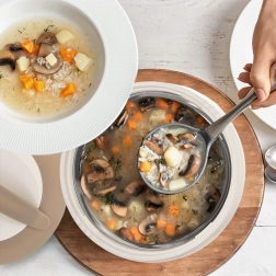 Takket være den isolerende konstruktion med inderside i rustfrit stål forbliver supper og hovedretter varme, mens desserter og is holdes behageligt kolde.