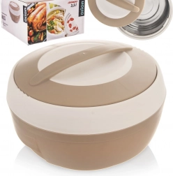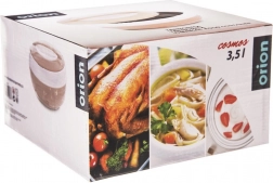 Nyd maden ved den ideelle temperatur med COSMOS-termoskålen 3,5 l fra ORION. Den dobbeltvæggede konstruktion med inderside i rustfrit stål og robust ydre plastskal hjælper med at holde på varmen i op til 2 timer eller bevare dine kolde desserter. Den lette konstruktion og det store håndtag gør den nem at bære.